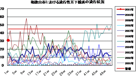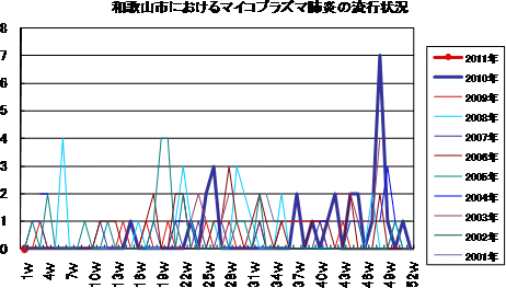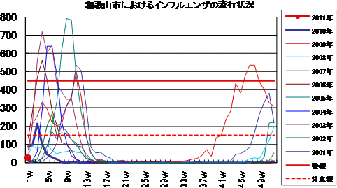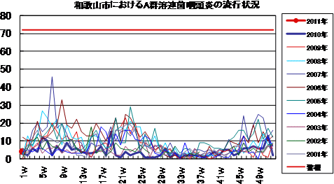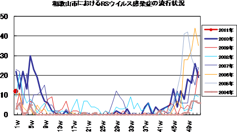 2011年1Wの和歌山市の5類感染症(定点把握)の発生状況です。