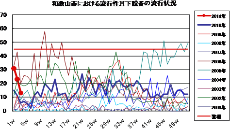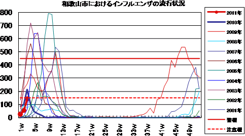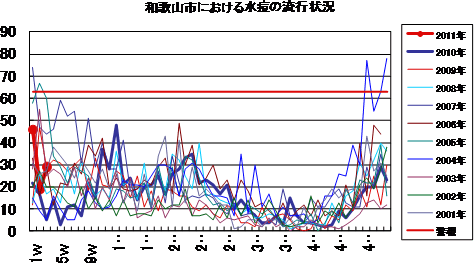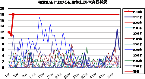 2011年3Wの和歌山市の5類感染症(定点把握)の発生状況です。