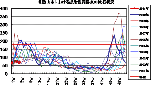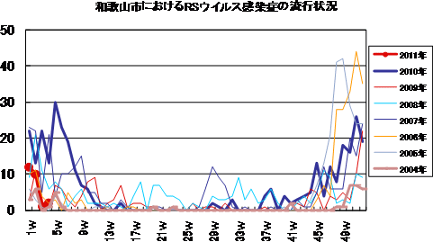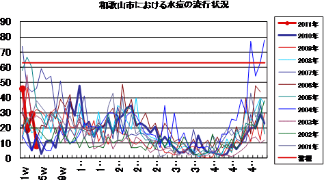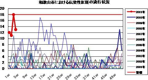 2011年4Wの和歌山市の5類感染症(定点把握)の発生状況です。