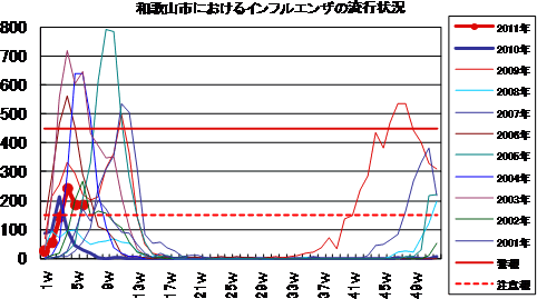 2009年は、第17週で初めての報告。11歳です。単抗原ワクチン接種済みでした。