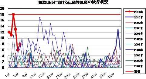 2011年6Wの和歌山市の5類感染症(定点把握)の発生状況です。