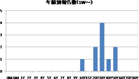 | 0歳 | 1歳 | 5歳 | 10歳 | 15歳 | 20歳 | 25歳 | 30歳 | 35歳 | 40歳 | 計 | |