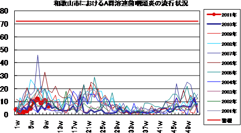 2011年10Wの和歌山市の5類感染症(定点把握)の発生状況です。
