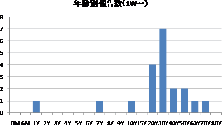 | 0歳 | 1歳 | 5歳 | 10歳 | 15歳 | 20歳 | 25歳 | 30歳 | 35歳 | 40歳 | 計 | |
