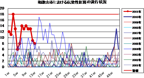 2011年13Wの和歌山市の5類感染症(定点把握)の発生状況です。