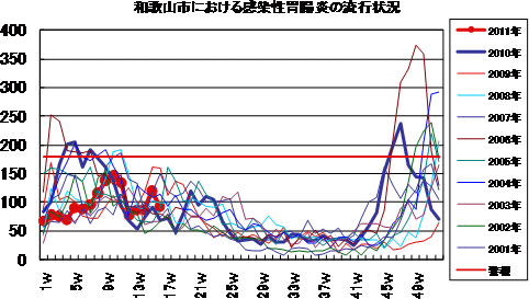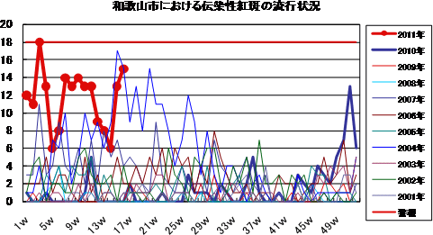 2011年16Wの和歌山市の5類感染症(定点把握)の発生状況です。