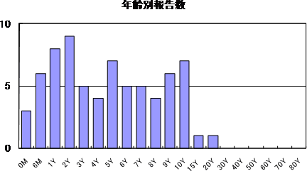 | 0歳 | 1歳 | 5歳 | 10歳 | 15歳 | 20歳 | 25歳 | 30歳 | 35歳 | 40歳 | 計 | |
