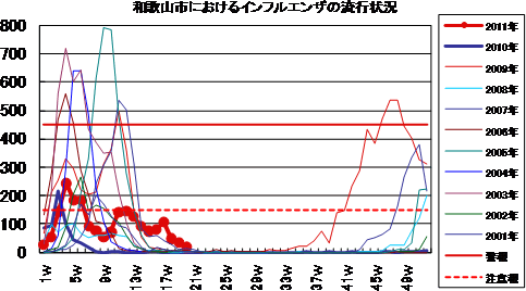2009年は、第17週で初めての報告。11歳です。単抗原ワクチン接種済みでした。