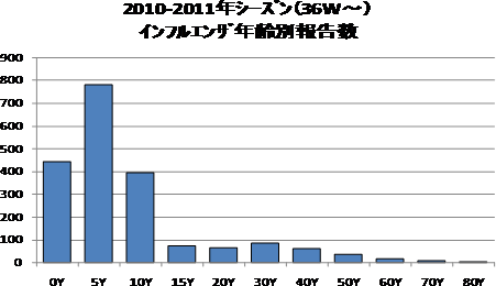 今シーズン(2010-2011)は、例年より早く、第43週61件以降増加し、第44週は82件→第45週153件→第46週200件と急増、警報が発令され、第47週は更に238件に増加しました。年齢別では乳幼児と小学生での報告が中心ですが、おとなの報告もあります。集団生活の場での集団感染事例も発生しています。