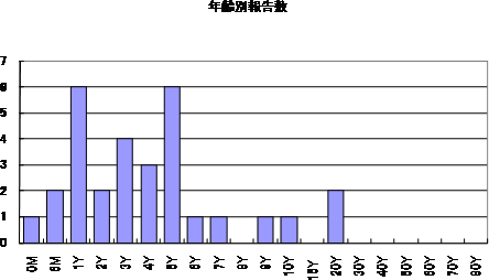 | 0歳 | 1歳 | 5歳 | 10歳 | 15歳 | 20歳 | 25歳 | 30歳 | 35歳 | 40歳 | 計 | |