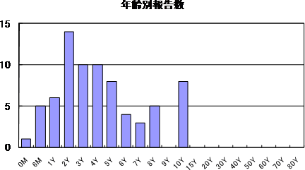 | 0歳 | 1歳 | 5歳 | 10歳 | 15歳 | 20歳 | 25歳 | 30歳 | 35歳 | 40歳 | 計 | |