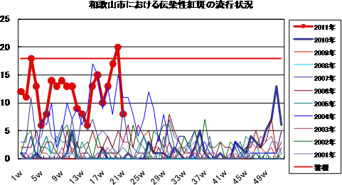 2011年21Wの和歌山市5類感染症(定点把握)の発生状況です。