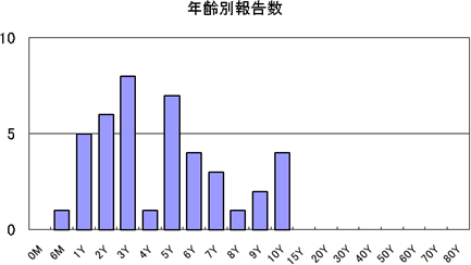 | 0歳 | 1歳 | 5歳 | 10歳 | 15歳 | 20歳 | 25歳 | 30歳 | 35歳 | 40歳 | 計 | |