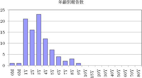 今シーズン(2010-2011)は、例年より早い11月初めから増加し始め、第46週に200件と急増、警報が発令され、第47週が238件とピークでした。年齢別では乳幼児と小学生での報告が中心ですが、おとなの報告もあります。集団生活の場での集団感染事例も発生しています。