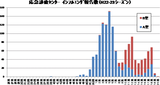 ※2.次の図は、応急診療センターの報告数をA型・B型別に示しています。