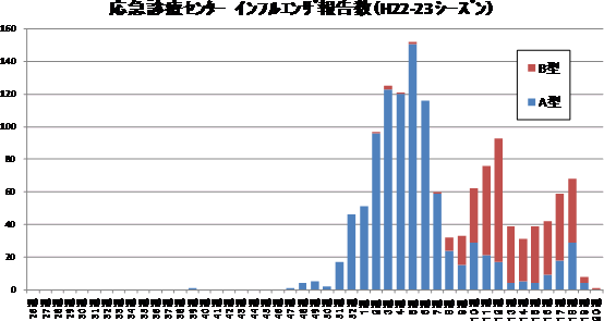 ※2.次の図は、応急診療センターの報告数をA型・B型別に示しています。