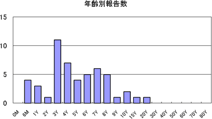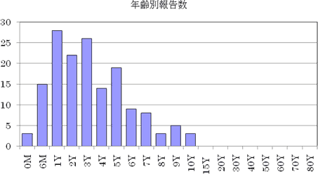 今シーズン(2010-2011)は、例年より早い11月初めから増加し始め、第46週に200件と急増、警報が発令され、第47週が238件とピークでした。年齢別では乳幼児と小学生での報告が中心ですが、おとなの報告もあります。集団生活の場での集団感染事例も発生しています。