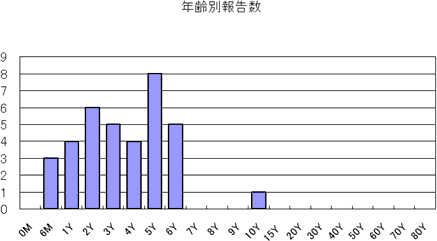 | 0歳 | 1歳 | 5歳 | 10歳 | 15歳 | 20歳 | 25歳 | 30歳 | 35歳 | 40歳 | 計 | |