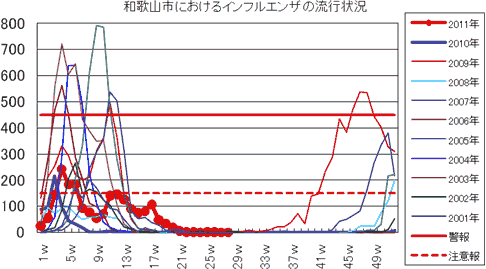 2011年28週の和歌山市5類感染症(定点把握)の発生状況です。
