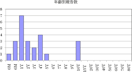 今シーズン(2010-2011)は、例年より早い11月初めから増加し始め、第46週に200件と急増、警報が発令され、第47週が238件とピークでした。年齢別では乳幼児と小学生での報告が中心ですが、おとなの報告もあります。集団生活の場での集団感染事例も発生しています。
