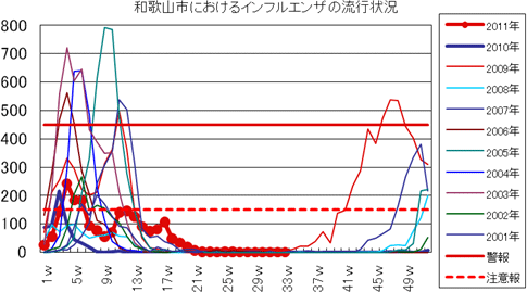 2011年 第33週現在、和歌山市内で麻しんの報告はありません。