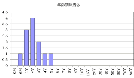 | 0歳 | 1歳 | 5歳 | 10歳 | 15歳 | 20歳 | 25歳 | 30歳 | 35歳 | 40歳 | 計 | |