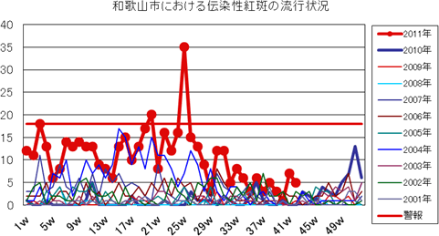 2011年 第42週現在、和歌山市内で麻しんの報告はありません。