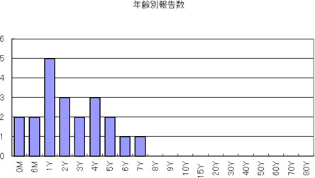 | 0歳 | 1歳 | 5歳 | 10歳 | 15歳 | 20歳 | 25歳 | 30歳 | 35歳 | 40歳 | 計 | |