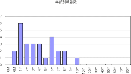 昨シーズン(2010-2011年)は、第45週頃より10件前後の報告がみられるようになり、第51週の26件がピークでした。以降徐々に減少傾向となり、2011年第3週以降は5件以内の報告となり、流行終息しました。