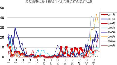 2011年第49週の和歌山市5類感染症(定点把握)の発生状況です。