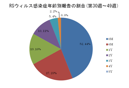 全国の調査でも、今年度は例年より早い第30週よりRSウィルスの報告が増え始め、流行しています。一時増加は緩やかになりましたが、同時期に比べて、報告は多いです。