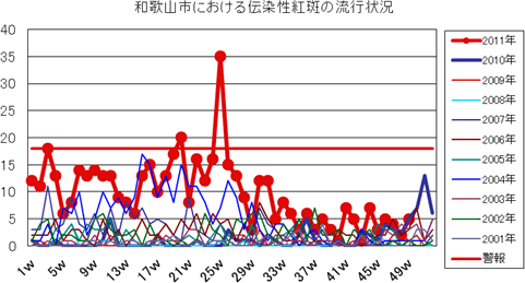 2011年 第49週現在、和歌山市内で麻しんの報告はありません。