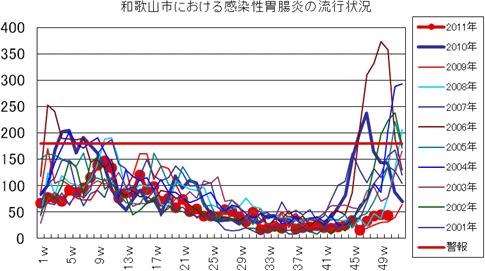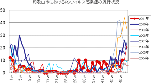 2011年第50週の和歌山市5類感染症(定点把握)の発生状況です。
