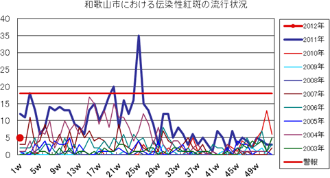 2012年第1週現在、和歌山市内で麻しんの報告はありません。