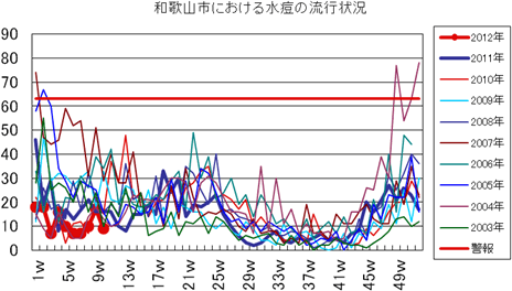 2012年第10週の和歌山市5類感染症(定点把握)の発生状況です。