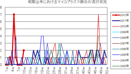 和歌山市内においては、2011年第38週より1〜2件の報告が続きました。
