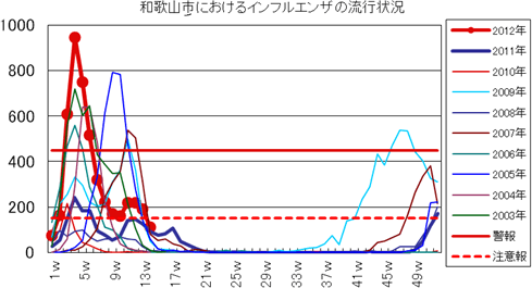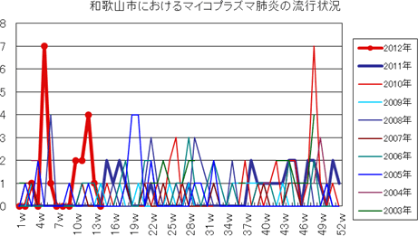 和歌山市内においては、2011年第38週より1〜2件の報告が続きました。