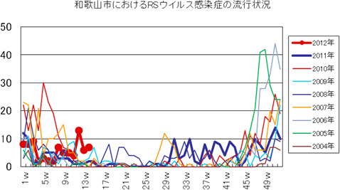 2012年第10週の和歌山市5類感染症(定点把握)の発生状況です。