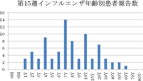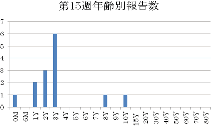 年齢別患者数報告は4〜5歳が最も多く、次に多いのが10〜14歳でした。報告の80〜90%を15歳未満の年齢が占めています。
