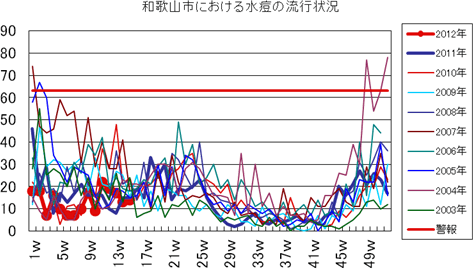 2012年第10週の和歌山市5類感染症(定点把握)の発生状況です。