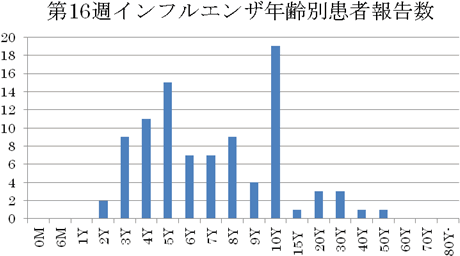 現在、市内の流行の中心は15歳未満の子供ですが、今シーズンは昨シーズンよりも早いペースで高齢患者の報告も増えました。0歳〜80歳以上まで、どの年代からも患者報告が出ていましたので、子供だけでなく、高齢者もインフルエンザに注意が必要です。