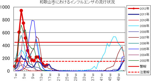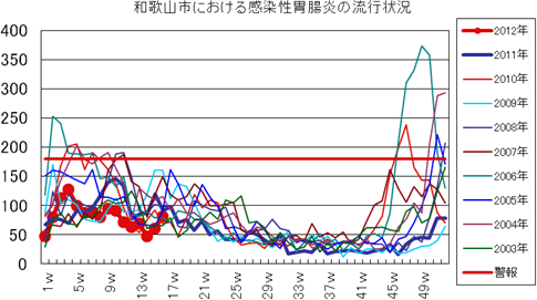 和歌山市内においては、2011年第38週より1〜2件の報告が続きました。