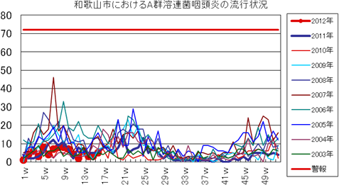 感染症発生動向調査のデータによると、A群溶血性レンサ球菌咽頭炎は冬季および春から初夏にかけて2 つピークが認められる傾向があります。
