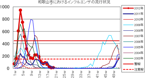 和歌山市内においては、2011年第38週より1〜2件の報告が続きました。