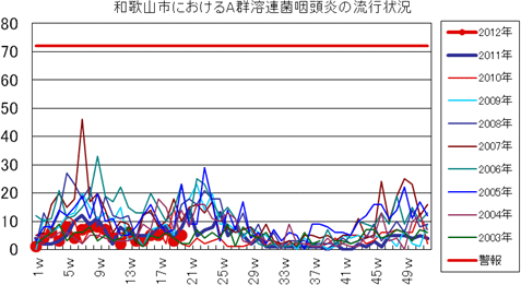 2012年第20週の和歌山市5類感染症(定点把握)の発生状況です。