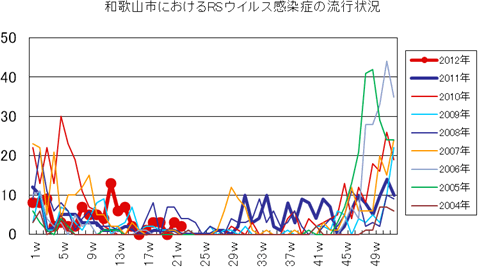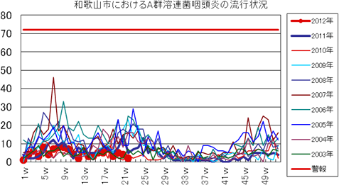 2012年第22週の和歌山市5類感染症(定点把握)の発生状況です。
