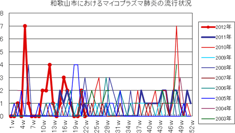 和歌山市内においては、2011年第38週より1〜2件の報告が続きました。