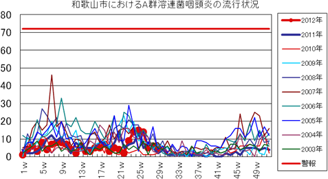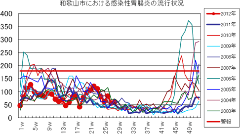 2012年第22週の和歌山市5類感染症(定点把握)の発生状況です。