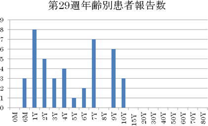 第30週〜第11週まで報告があった患者の95%が2歳以下でした。