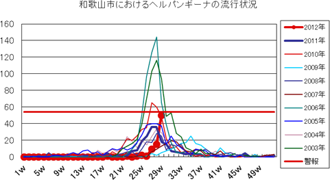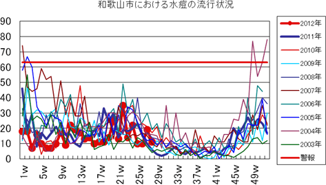 和歌山市内においては、2011年第38週より1〜2件の報告が続きました。